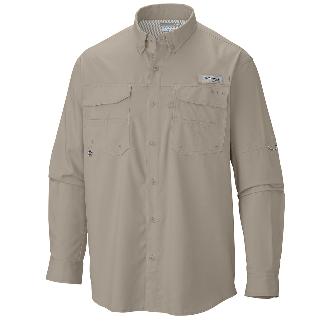 Clean, versatile style and all-day performance for long days out in the elements, this UPF 50 sun-protecting long-sleeve fishing shirt is crafted from a lightweight, cool-wearing fabric with our Blood 'N Guts technology, which releases stains and sheds water to keep you clean and dry. Other angler-specific features include a rod holder, hidden back ventilation to keep you cool, and a fold-up sun collar to protect your neck from harsh UV rays.