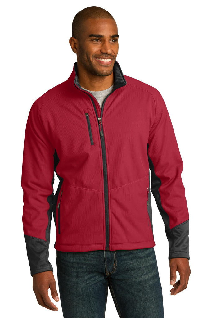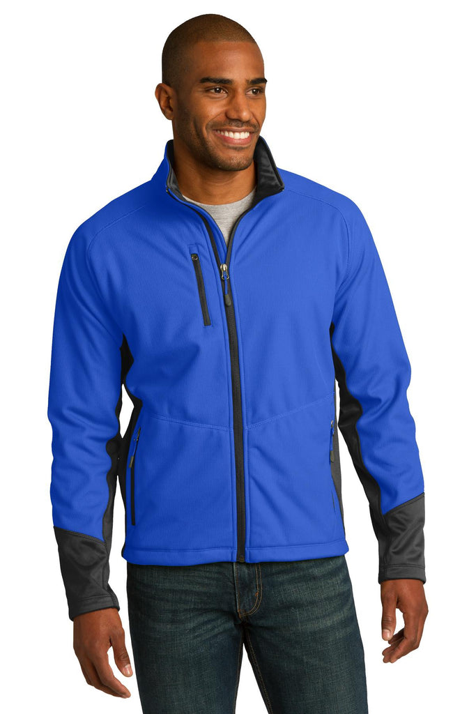 An understated vertical texture and bold colorblocking gives this durable, water-repellant soft shell a sporty look and feel. Ideal for moderate wind or rain, it has a warm poly microfleece interior and plenty of stretch for full range of motion.|