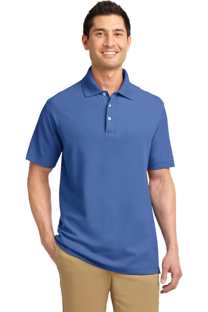 The EZCotton Pique Polo has an anti-curl collar and resists pilling, fading, wrinkling and shrinking with ease.