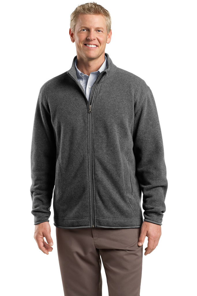 This rich fleece style is ideal indoors and out. It has a soft sweater-knit face and a fleece interior for exceptional warmth. A cadet collar, reverse coil zipper and zippered pockets enhance the appeal. Binding on cuffs and hem. Made of 12-ounce, 100% polyester sweater fleece.