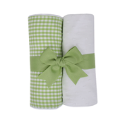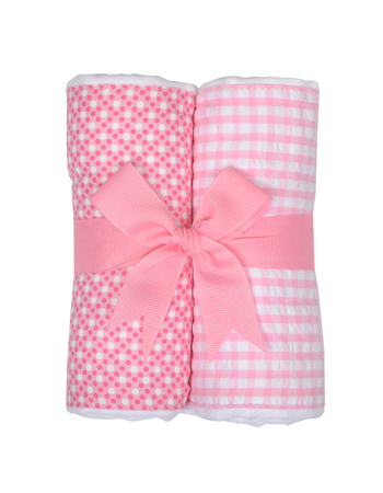 This set of two burp pads is always a favorite, featuring gorgeous fabric sewn down the center of each burp pad. The set is presented beautifully rolled and tied with grosgrain ribbon - ready for gift giving with no extra wrapping required!