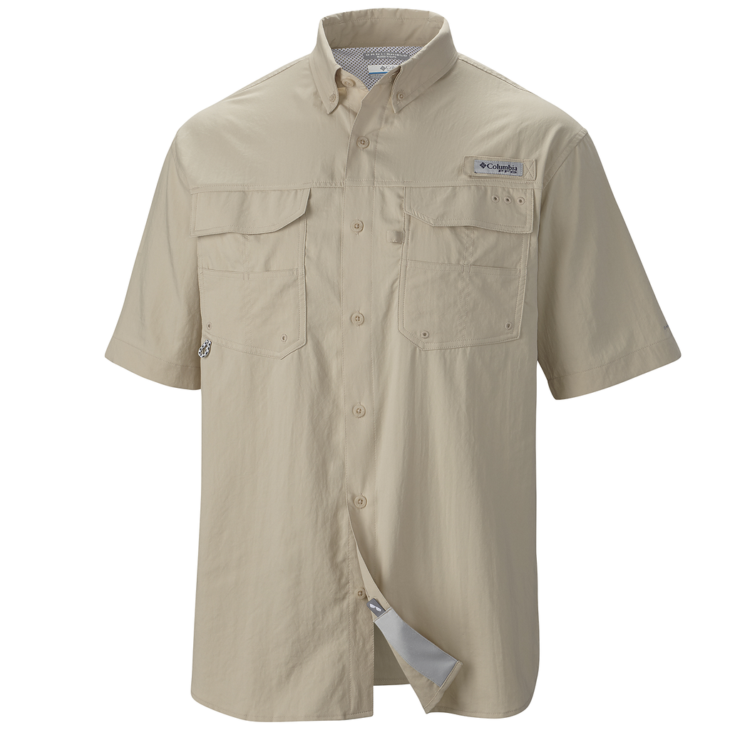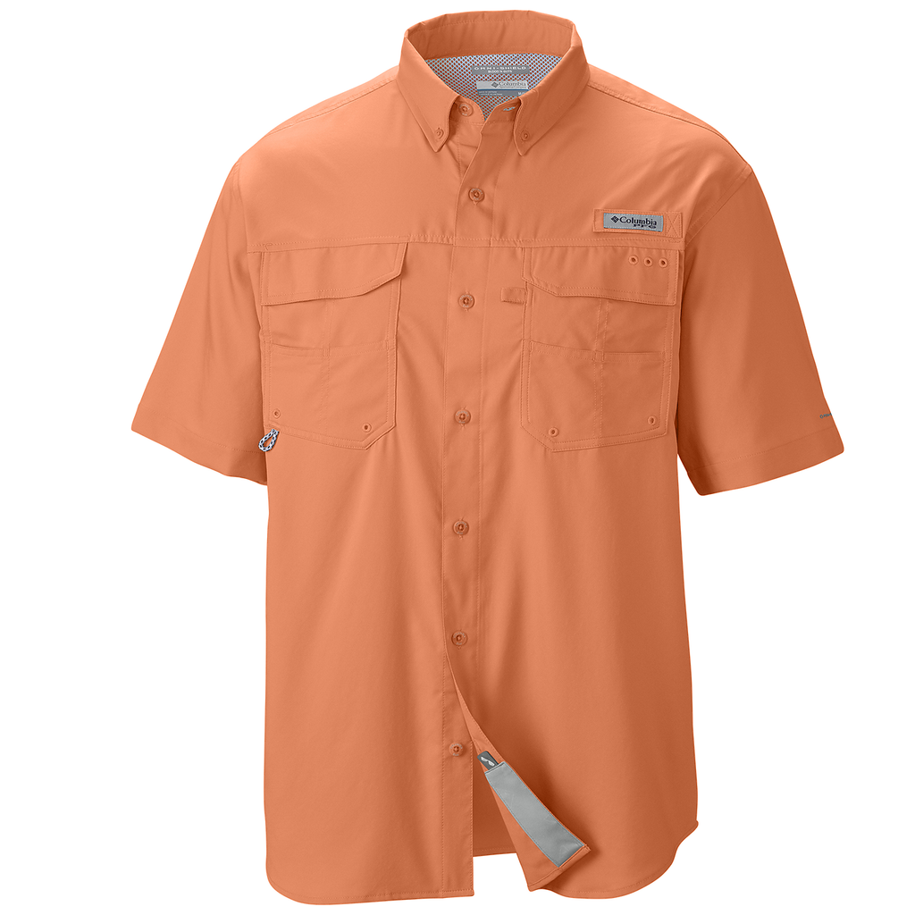 Clean, versatile style and all-day performance for long days out in the elements, this UPF 50 sun-protecting short-sleeve fishing shirt is crafted from a lightweight, cool-wearing fabric with our Blood 'N Guts™ technology, which releases stains and sheds water to keep you clean and dry. Other angler-specific features include a rod holder, hidden back ventilation to keep you cool, and a fold-up sun collar to protect your neck from harsh UV rays.