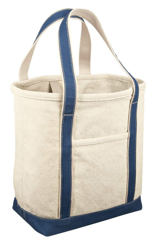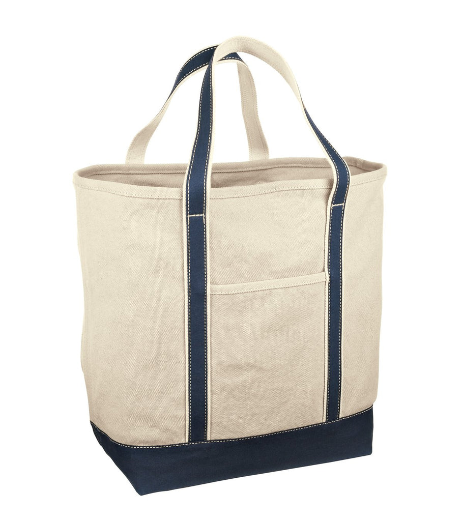 Classic sturdy tote is ready for a monogram. Contrast handles and trim, large main pocket includes interior organizing slip pockets, key fob, flat front pocket for easy decoration. Stands upright with a flat bottom. Made of 24-ounce, 100% cotton canvas.